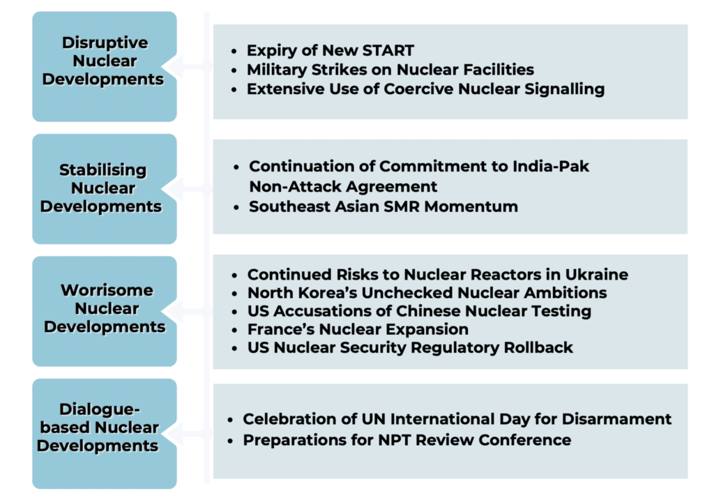 As part of APLN’s 2026-2030 Research Strategy, we are delighted to launch a new publication, the APLN Quarterly Nuclear Memo. The document tracks, analyses and summarises nuclear developments shaping the Asia-Pacific security environment. These are grouped into four categories: